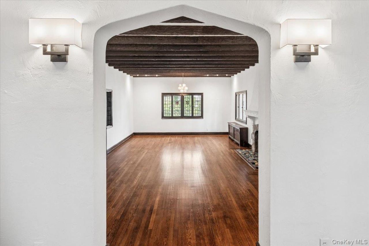 Stately, sun-filled Tudor on prime street in sought-after Larchmont Woods. This gracious home is showcased by expansive living areas and dramatic architectural features, including a grand living room accented by a high, beamed ceiling, period fireplace mantel & stained glass. Rich millwork and leaded windows throughout showcase this home's character. The well-proportioned rooms and gleaming hardwood floors create a warm, open feel while the craftsmanship and details of another era are preserved. The kitchen is large, offering room for dining and an island with 2nd sink. The 2nd level offers four bedrooms and two baths, and on the walk-up 3rd floor, there is an ensuite 5th bedroom, a room & storage. The walk-out basement is spacious & includes a genuine speakeasy with a bar from the days of prohibition! This layout is equally suited to relaxed living and large-scale entertaining. The indoor extends seamlessly to the spacious grounds and two decks, one a large entertaining area, and a smaller, more private retreat off the home office. Located close to Larchmont Village's shops, dining, and easy train access to NYC. The curb presence, layout, and solid foundation create an opportunity to bring your vision to a home with both impressive scale and authentic character. This estate property, offered As Is, is a prime opportunity to enhance a sophisticated residence. Taxes successfully grieved with new assessment of 21,900, leading to a BIG reduction in future taxes!