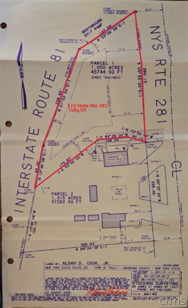 Outstanding commercial development opportunity in the heart of Tully, NY. This 1+ acre parcel is strategically positioned directly off the I-81 exit ramp, offering exceptional visibility and immediate accessibility for both northbound and southbound traffic. With traffic counts exceeding 28,500 vehicles per day on Interstate 81 and approximately 4,700 vehicles daily on Route 281, this site delivers premium exposure to a steady flow of commuters, travelers, and local residents. Its highly visible corner positioning makes it an ideal setting for fast food, quick-service restaurants, retail, office space, hospitality, or other service-based businesses seeking maximum roadside presence. Located within the Town of Tully, the property benefits from a vibrant year-round destination market. The area is known for its outdoor recreation, including nearby lakes, parks, and ski destinations, drawing consistent seasonal and tourism traffic in addition to daily local demand. Whether you're expanding an existing brand or launching a new venture, this high-traffic, high-visibility location offers the access, exposure, and growth potential today's businesses demand.